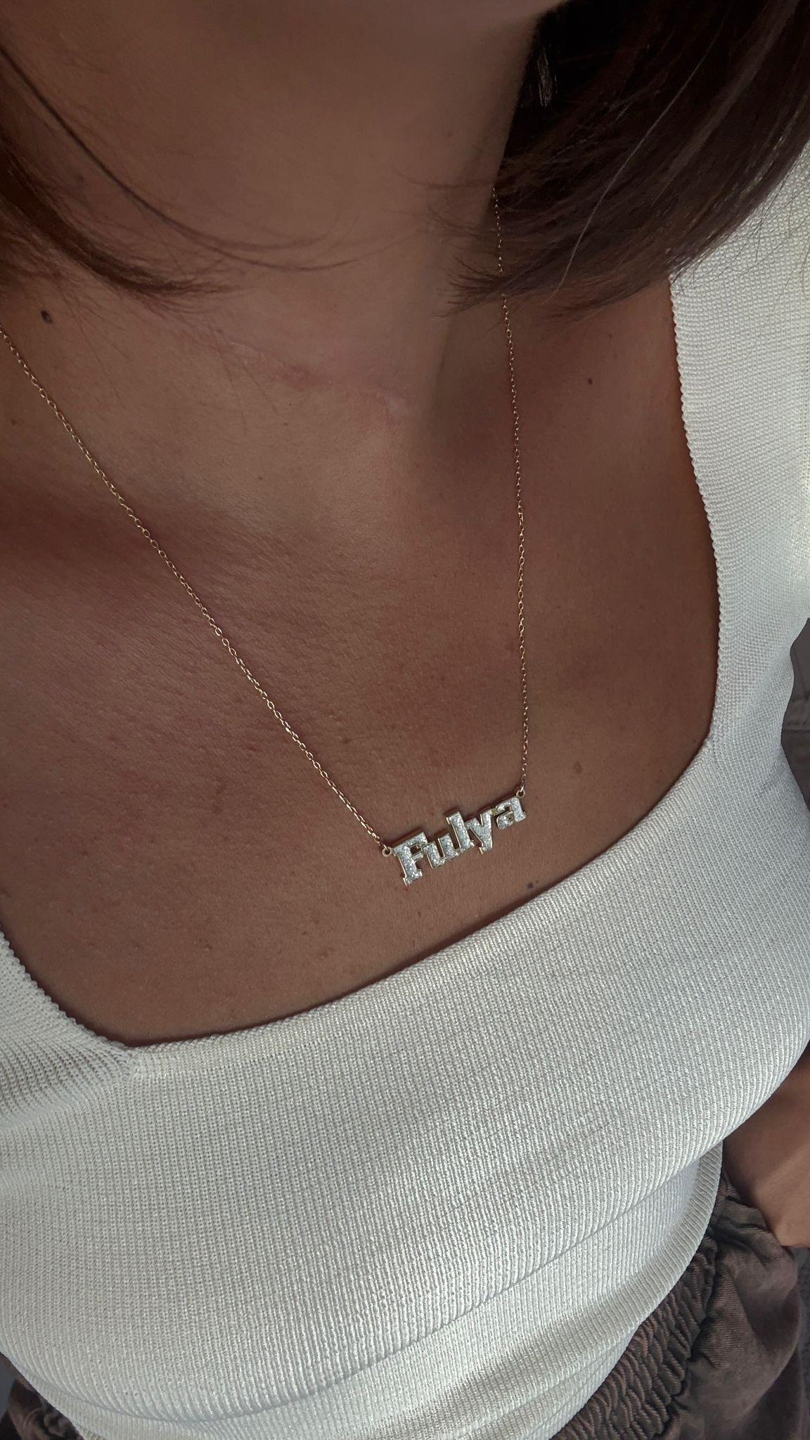 Işıltı Detay Mineli Tasarım İsim Gümüş Kolye